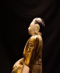 The Mandalay period represents the final great flourishing of traditional Burmese sculpture before the advent of colonial influence. Artisans during this time focused on humanizing sacred forms, giving figures a softened, almost portrait-like presence. This statue exemplifies that transition — it radiates calm, devotion, and lifelike humanity while still rooted in sacred iconography.