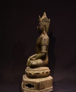 The Chiang Saen period remains one of the most celebrated eras in Thai art history, renowned for its exquisite bronze Buddha figures that reflect both Mon-Dvaravati and Khmer influences. These statues, often commissioned for royal and monastic settings, were created with an unmatched level of craftsmanship and spiritual devotion. This particular sculpture stands as a testament to that golden age, offering a glimpse into the meditative grace and divine presence that defined the religious art of the period.